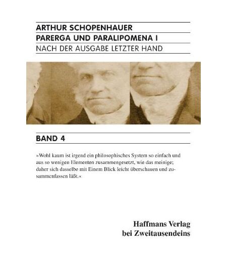 Binding : Taschenbuch, Edition : 1, Label : ZWEITAUSENDEINS, Publisher : ZWEITAUSENDEINS, NumberOfItems : 2, medium : Taschenbuch, numberOfPages : 1050, publicationDate : 2010-10-01, authors : Arthur Schopenhauer, publishers : Ludger Lütkehaus, languages : german, ISBN : 3861509237 ...
