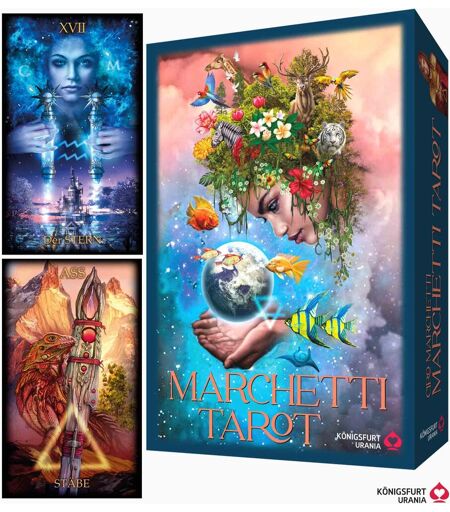 Brand : Königsfurt-Urania Verlag, Binding : paperback, Label : Marchetti Tarot - Folge deiner Intuition! : 78 Tarotkarten und 144-seitiges Buch, Stülpdeckelschachtel mit Spotlack, medium : paperback, numberOfPages : 144, publicationDate : 2024-09-12, languages : german, ISBN : 3868265872 ...