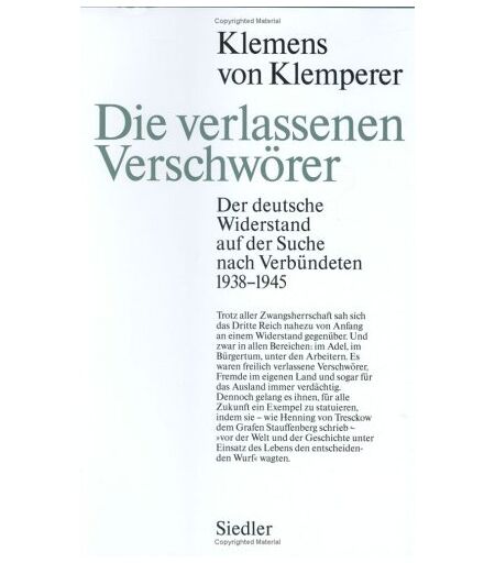Binding : Gebundene Ausgabe, Label : Siedler Verlag, Publisher : Siedler Verlag, medium : Gebundene Ausgabe, numberOfPages : 608, publicationDate : 1994-05-01, authors : Klemperer, Klemens von, translators : Klaus Kochmann, languages : german, ISBN : 3886801527 ...