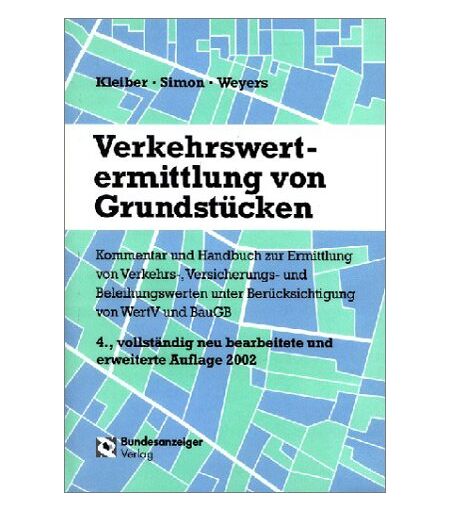 Binding : Gebundene Ausgabe, Label : Bundesanzeiger Verlagsges, Publisher : Bundesanzeiger Verlagsges, medium : Gebundene Ausgabe, numberOfPages : 2778, publicationDate : 2002-12-01, authors : Wolfgang Kleiber, Jürgen Simon, Gustav Weyers, ISBN : 3898171124 ...