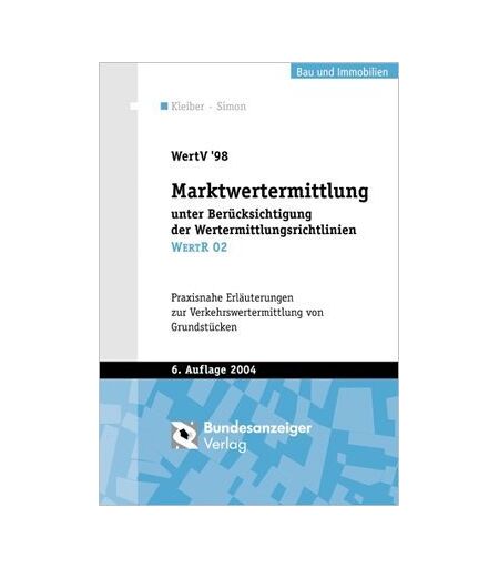 Binding : Gebundene Ausgabe, Edition : 6, Label : Bundesanzeiger Verlagsges, Publisher : Bundesanzeiger Verlagsges, medium : Gebundene Ausgabe, numberOfPages : 1848, publicationDate : 2004-12-01, authors : Wolfgang Kleiber, Jürgen Simon, ISBN : 3898173682 ...