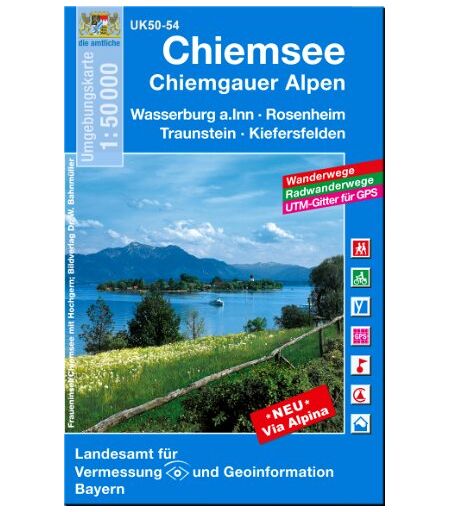 Landesamt für Vermessung und Geoinformation Bayern Chiemsee, Chiemgauer Alpen 1 : 50 000: Wasserburg A.Inn. Rosenheim. Traunstein. Kiefersfelden. Mit Wander- Und Radwanderwegen, Utm-Gitter Für Gps-Nutzer (Uk 50 - 54)
