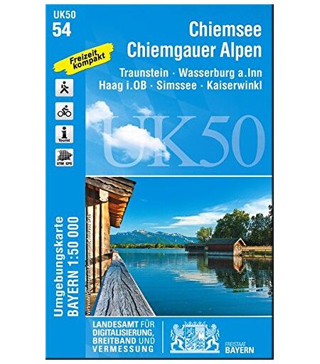 Landesamt für Digitalisierung, Breitband und Vermessung, Bayern Uk50-54 Chiemsee, Chiemgauer Alpen: Traunstein, Wasserburg A.Inn, Haag I.Ob, Simssee, Kaiserwinkl (Uk50 Umgebungskarte 1:50000 Bayern Topographische Karte Freizeitkarte Wanderkarte)