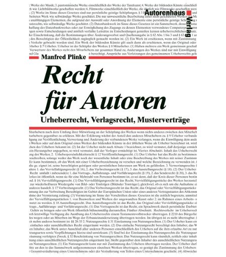 Manfred Plinke Recht Für Autoren. Urheberrecht, Verlagsrecht, Musterverträge. Das Neue Urhebervertragsrecht Mit Dem Neuen Gesetzestext.