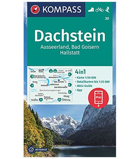 KOMPASS-Karten GmbH Kompass Wanderkarte 20 Dachstein, Ausseerland, Bad Goisern, Hallstatt 1:50000: 4in1 Wanderkarte Mit Aktiv Guide Und Detailkarten Inklusive Karte Zur ... Skitouren. (Kompass-Wanderkarten, Band 20)