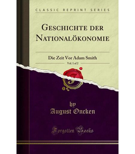 Binding : paperback, Label : Geschichte der Nationalökonomie, Vol. 1 of 2 (Classic Reprint) : Die Zeit Vor Adam Smith : Die Zeit VOR Adam Smith (Classic Reprint), medium : paperback, publicationDate : 2018-08-24, releaseDate : 2018-08-24, languages : german, ISBN : 036537864X ...