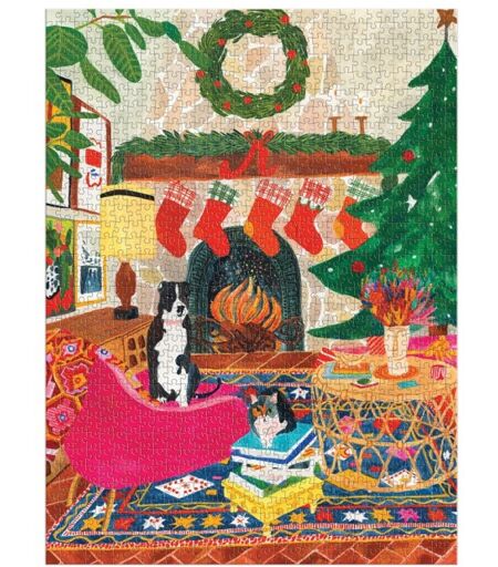 Galison Amis au Coin du Feu - Puzzle de 1000 Pièces dans une Boîte Carrée