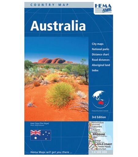 Hema Australia 1 : 4 500 000: National Parks. Town Index. Aboriginal Land. Road Distances. Distance Chart (Australia Maps)