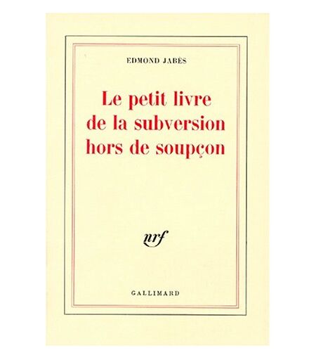Edmond Jabès Le Petit Livre De La Subversion Hors De Soupçon