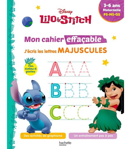 Binding : paperback, Label : Disney - Lilo et Stitch - Mon cahier effaçable - J'écris les lettres majuscules (3 - 6 ans), Format : big_book, medium : paperback, numberOfPages : 32, publicationDate : 2025-01-15, languages : french, ISBN : 2017269255 ...
