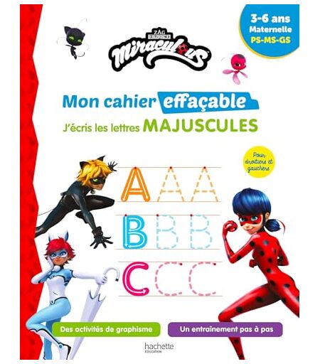 Hachette Miraculous : Mon Cahier Effaçable, J'Écris Les Lettres Majuscules : 3-6 Ans, Maternelle, Ps, Ms, Gs