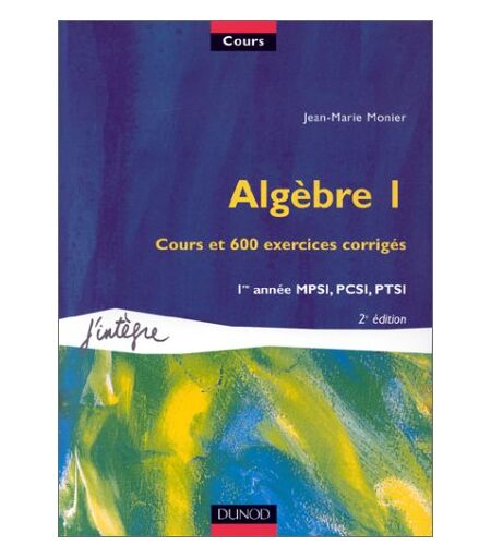 Jean-Marie Monier Algèbre I. Cours Et 600 Exercices, 2ème Édition (J'Integre)