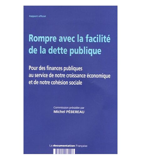Michel Pébereau Rompre Avec La Facilité De La Dette Publique : Pour Des Finances Publiques Au Service De Notre Croissance Économique Et De Notre Cohésion Sociale