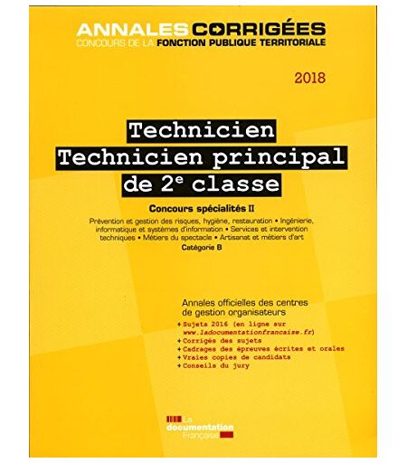 Technicien Territorial Principal De 2e Classe 2018. Concours Spécialités 2 : Prévention Et Gestion Des Risques, Hygiène, Restauration, Ingénierie, Informatique Et Systèmes D'Information, Services Et Intervention Techniques, Métiers Du Spectacle, Artisan..