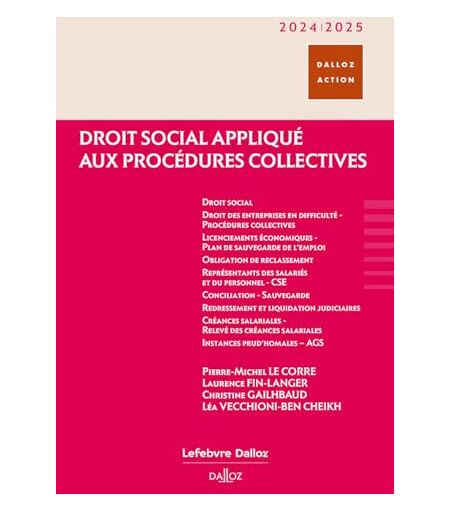 Pierre-Michel Le Corre Droit Social Appliqué Aux Procédures Collectives : 2024-2025