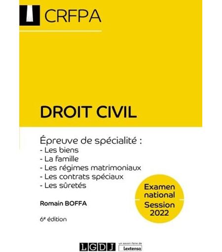 Romain Boffa Droit Civil : Examen National, Session 2022, Épreuve De Spécialité : Les Biens, La Famille, Les Régimes Matrimoniaux, Les Contrats Spéciaux, Les Sûretés
