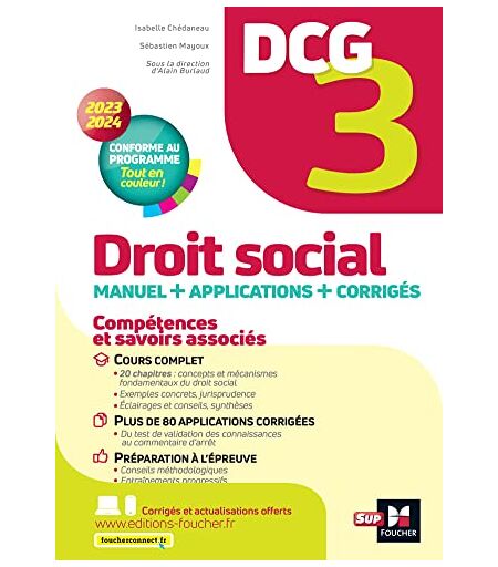 Isabelle Chédaneau Dcg 3, Droit Social : Manuel + Applications + Corrigés : 2023-2024, Conforme Au Programme