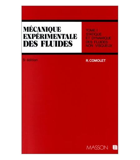Raymond Comolet Mécanique Expérimentale Des Fluides. Vol. 1. Statique Et Dynamique Des Fluides Non Visqueux