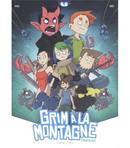 Grim, jeune citadin de Montpellier, a la chance d'avoir un frère, Pof, qui possède une entreprise de trampoline de montagne. En échange d'argent pour acheter des jeu vidéo et des pizzas, Grim va s'occuper de faire sauter les petits monstres et d'éviter qu'ils tombent. Mais attention, car la montagne est peuplée de nombreux dangers et obstacles, et c'est une véritable quête initiatique qu'entame Grim, qui va le mener des rituels des joyeux montagnards aux kakas des montagnes en passant bien sûr par les caravanes d'altitude, le tout entremêlé d'épisodes psychotiques inspirés de jeu vidéo et d'anime cultes. Mais le plus drôle dans Grim à la montagne, c'est les making of. D'abord discrets et peu encombrants, ils grossissent incontrôlablement jusqu'à prendre beaucoup plus de place que le récit et aboutir bien sûr au making off du making off qui se termine en bagarre ultime pour le contrôle de la page 36. ...