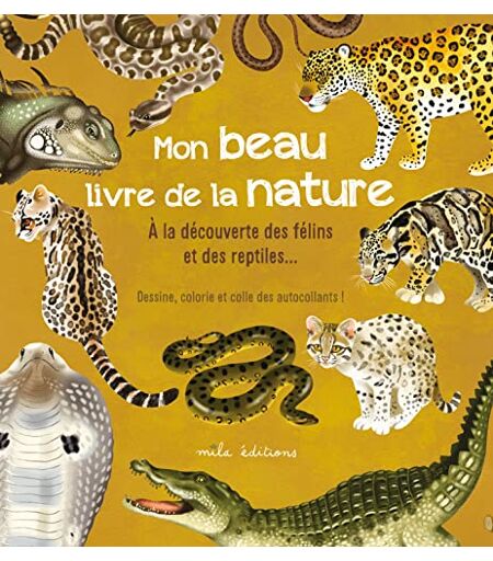 Anne Baudier Mon Beau Livre De La Nature : À La Découverte Des Félins Et Des Reptiles... : Dessine, Colorie Et Colle Des Autocollants !