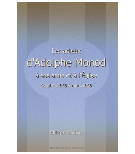 Les Adieux D'Adolphe Monod À Ses Amis Et À L'Église: Octobre 1855 À Mars 1856