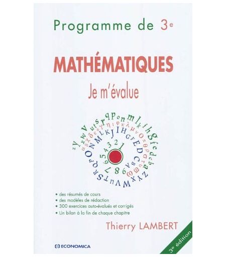 Thierry Lambert Mathématiques, Je M'Évalue : Programme De 3e : Des Résumés De Cours, Des Modèles De Rédaction, 300 Exercices Auto-Évalués Et Corrigés, Un Bilan À La Fin De Chaque Chapitre