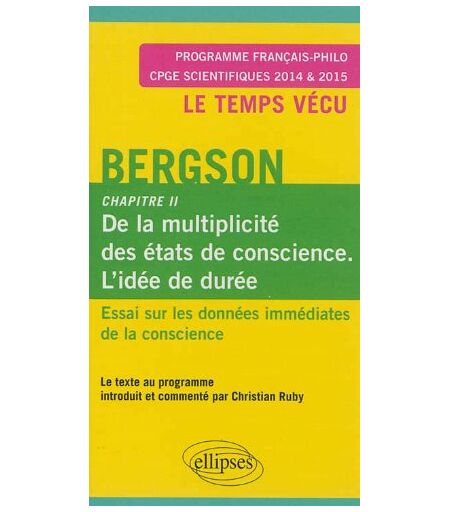 Christian Ruby Essai Sur Les Données Immédiates De La Conscience : Chapitre Ii, De La Multiplicité Des États De Conscience, L'Idée De Durée : Programme Français-Philo, Cpge Scientifiques 2014 & 2015