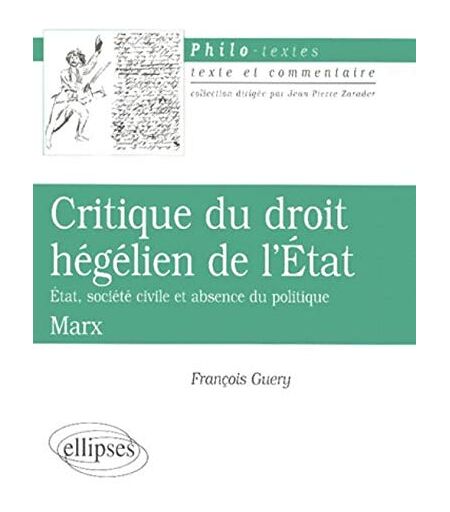 François Guery Critique Du Droit Hégélien De L'État (État, Société Civile Et Absence De Politique), Marx