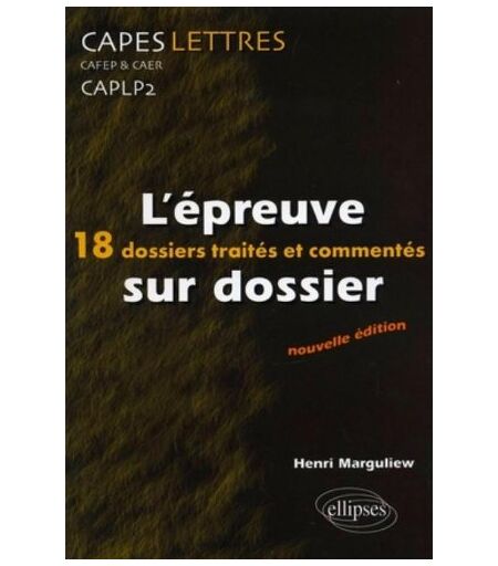 Henri Marguliew L'Épreuve Sur Dossier : Capes, Cafep Et Caer, Caplp2, Lettres : 18 Dossiers Traités Et Commentés