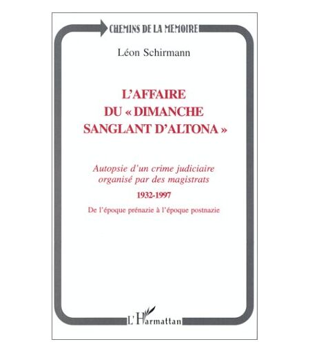 Léon Schirmann L'Affaire Du Dimanche Sanglant D'Altona, 1932-1997 : Autopsie D'Un Crime Judiciaire Organisé Par Des Magistrats : De L'Époque Prénazie À L'Époque Postnazie