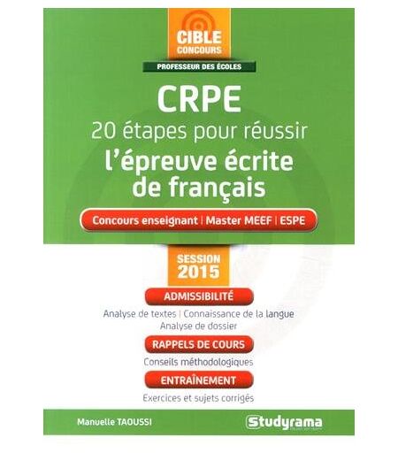 Manuelle Taoussi Crpe 20 Étapes Pour Réussir L'Épreuve Écrite De Français : Concours Enseignant, Master Meef, Espe : Session 20015