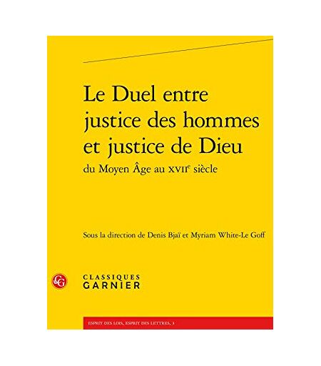 Classiques Garnier Le Duel Entre Justice Des Hommes Et Justice De Dieu Du Moyen Age Au Xviie Siècle