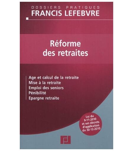 Francis Lefebvre Réforme Des Retraites : Âge Et Calcul De La Retraite, Mise À La Retraite, Emploi Des Seniors, Pénibilité, Épargne Retraite