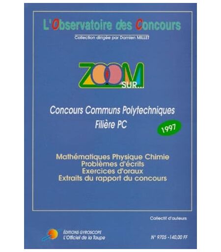 Binding : paperback, Label : Zoom Sur Concours Communs Polytechniques Filiere Pc. Concours 1997, medium : paperback, publicationDate : 1999-07-21, languages : french, ISBN : 2912459109 ...