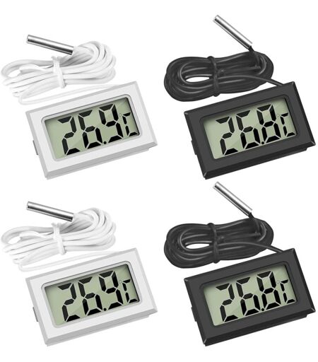 BEARSU Mini Digital lcd Thermomètre Température avec Sonde de Température Capteur Testeur pour Réfrigérateur Congélateurs Aquarium (2X Noir 2X Blanc)