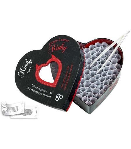 Si vous et votre partenaire (H/H, H/F ou F/F) êtes attirés par des (s)explorations excitantes, voici le jeu qu’il vous faut. A l’aide de la pincette fournie, prenez chacun à votre tour un rouleau de papier dans le coeur, déroulez-le et... qu’arrivera-t-il ? Allez-vous réaliser un fantasme secret ou découvrir des plaisirs inattendus ? Explorez les frontières de votre sexualité en partageant des moments intimes. Quelques exemples du Corps à Coeur Kinky : La prochaine fois que vous ferez l'amour, prenez une paire de sous vêtements de votre partenaire et placez les dans sa bouche pour étouffer les sons. A vous de choisir si ils sont propres ou ont été portés. Appréciez vous de recevoir de la douleur durant vos activités sexuelles ? D'en infliger ? Le Corps à coeur Kinky vous amènera à partager un voyage de découvertes sexuelles. C’est un jeu qui n’a pas son pareil. Il n’y a pas de limite de temps, il n’y a que des gagnants et... on peut y jouer à n’importe quel moment du jour ou de la nuit ! Vous tirez tour à tour un petit papier du coeur et vous vivez ensemble des moments très "hot" ! ...