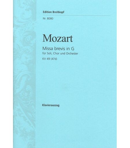 Brand : Breitkopf & Härtel, Binding : paperback, Label : Missa brevis G-dur KV 49 (47d) - Klavierauszug (EB 8080), NumberOfItems : 1, PackageQuantity : 1, medium : paperback, publicationDate : 1980-12-09, languages : latin ...