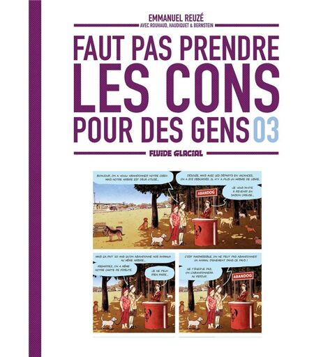 Après les succès des deux premiers tomes, Faut pas prendre les cons pour des gens revient en novembre pour un tome 03 toujours aussi hilarant et terriblement efficace. Un petit bijou d'humour noir et absurde sur la bêtise ordinaire. Après deux années de travail à manipuler la mécanique de l'absurde pour mieux tordre les clichés de notre société, Emmanuel Reuzé approfondit son analyse de la bêtise humaine et publie un troisième opus toujours aussi drôle et grinçant.Dans ce nouvel album, il aborde par l'absurde des grands sujets de société tels que l'enseignement, la pauvreté, le racisme ordinaire, l'intelligence artificielle, la radicalisation, le dopage, l'eugénisme, le harcèlement publicitaire, la corrida, les services après vente, les déserts médicaux...Chaque gag est construit avec intelligence, dans un style réaliste dont la répétition de cases creuse le décalage comique entre dialogues et situations. Mais s'il a bien conservé son style réaliste, Reuzé a continué à développer son dessin sur ce troisième tome pour nous offrir de superbes pages qui fourmillent de détails. Avec un humour absurde et féroce, Emmanuel Reuzé, Nicolas Rouhaud, Jorge Bernstein et Vincent Haudiquet font une fois de plus la démonstration de la bêtise du réel, et dénoncent sa violence. ...