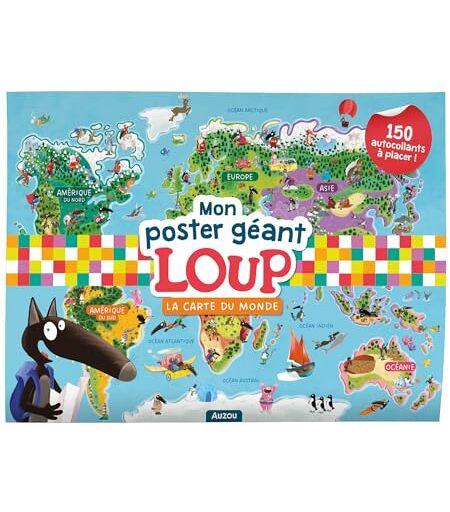 Orianne Lallemand Mon Poster Géant Loup : La Carte Du Monde : 150 Autocollants À Placer !