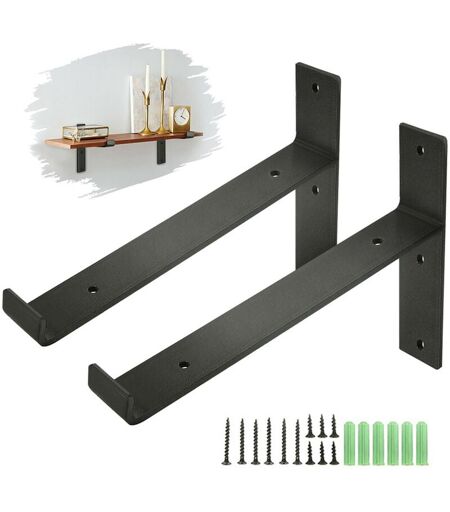 DRILLPRO Lot de 2 Console Support Étagère mural l.220 mm 35mm Épaisseur Noir Jmax
