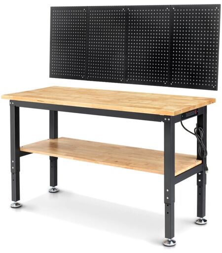 Maerex - Etabli avec 2 Étagères 152x56cm, Réglable en hauteur, Table de Travail avec panneau perforé
