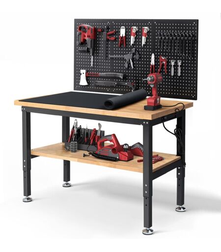 Maerex - Etabli avec 2 Étagères 122x50.8cm, Réglable en hauteur, Table de Travail avec panneau perforé
