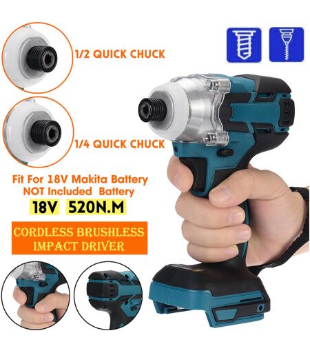 INSMA Clé à Chocs sans fil brushless Drillpro 520N.m 2700 tr / min 1/4'' sans batterie (pour Makita 18V) Fantablau
