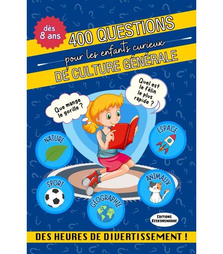 Binding : paperback, Label : Quiz culture générale pour les enfants curieux dès 8 ans : pour stimuler sa mémoire et enrichir ses connaissances. 400 questions réponses avec les solutions à la fin, medium : paperback, numberOfPages : 90, publicationDate : 2023-12-04, languages : french ...