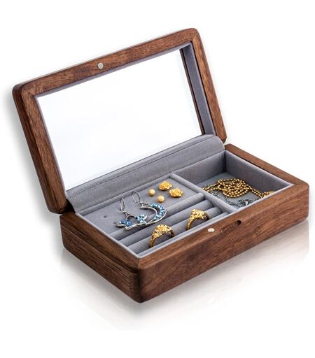 Petite Boîte À Bijoux Rétro Portable En Bois Massif Pour Femme (Noyer)