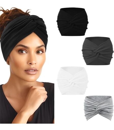 Bandeau Cheveux Femme, 4 Pcs Élastique Bandeaux Mode Pour Femmes, Large Serre Tete Femme Yoga Sport Foulard Cheveux Femme Multicolore Headband Accessoire Cheveux