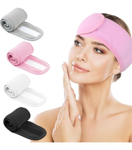 4 Pièces Bandeau-Maquillage Femme, Bandeau-Cheveux Pour Soin-Visage Avec Magic-Tape-Élastique, Antidérapant Sport Bandeaux-Mode, Accessoires Pour Fille Sport Yoga (Noir, Blanc, Rose, Gris)