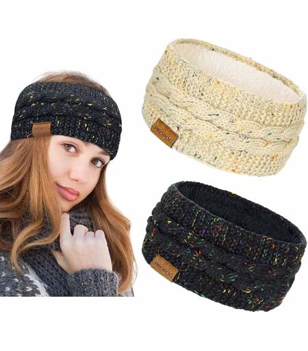 Bandeau Cheveux Femme Hiver, 2 Pièces Tricot Cache Oreille Femme Doublure Polaire Bandeaux Mode Pour Femmes Élasticité Peluche Headband Accessoires Cheveux Femme Pour Course Exercice Ski