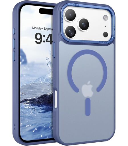 Coque Pour Iphone 17 Pro Compatible Avec Magsafe, Pc+Tpu Résistant, Semi-Transparente Et Matifiée, Touches Métalliques, Protection Renforcée Pour Écran Et Caméras, Bleu Clair