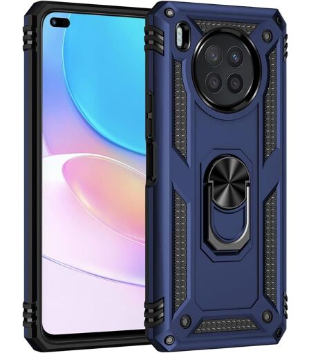 Kal-Coque Pour Huawei Nova 8i, + Verre Trempé, Étui De Protection Soft Tpu + Pc, Heavy Duty, Slim Dual Layer Protective Housse Etui Coque Avec Support De Bague En Métal, Bleu